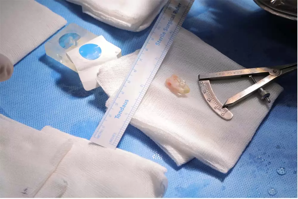 در مرحله دوم ترکیب قرنیه و دندان که اطراف آن بافت همبند رشد کرده است را با ایجاد برش روی پلک خارج میکنیم.سپس با ایجاد برشی در مرکز قرنیه بیمار، مقداری از استوانه داخل چشم و ترکیب دندان و قسمت خارجی استوانه روی قرنیه قرار میگیرد و به عنوان پروتز قرنیه چشم عمل خواهد کرد.